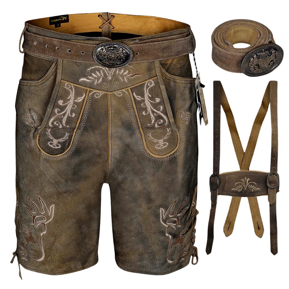 Oktoberfest German Bavarian Antiqued Genuine Nubuck Leather Lederhosen Short
