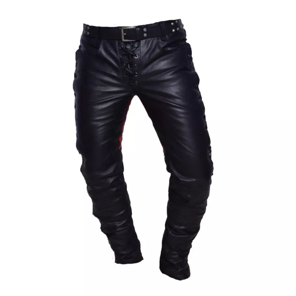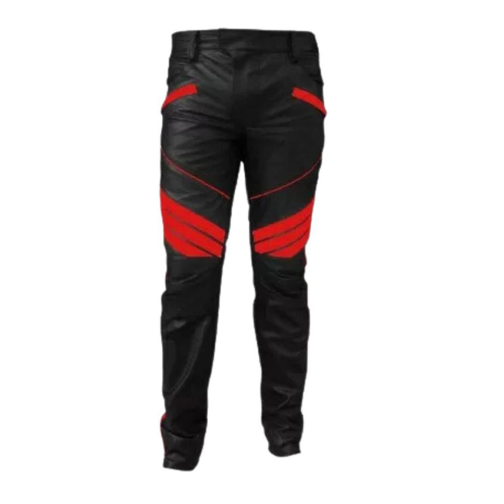 Men's Black-Red Western American Cowhide Leather Pants with Two-Tone Design