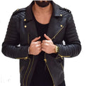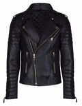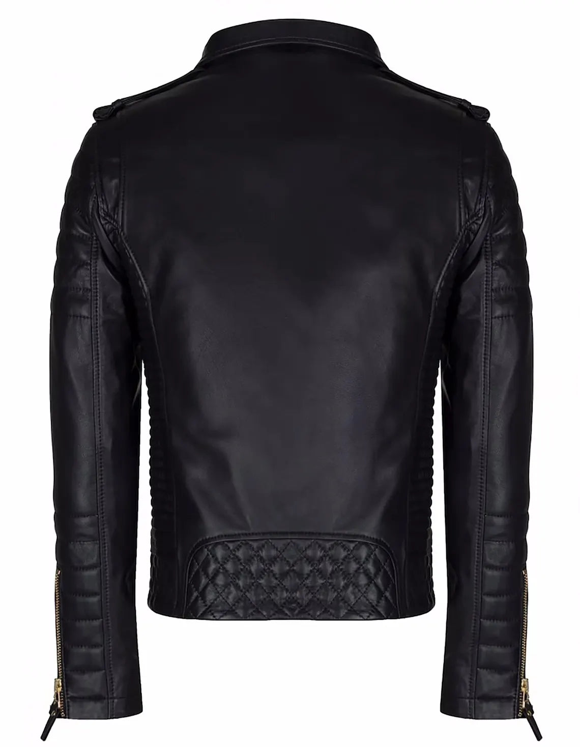 Men’s Black Cowhide Leather Motorbike Jacket – Biker Style with Asymmetrical Zipper