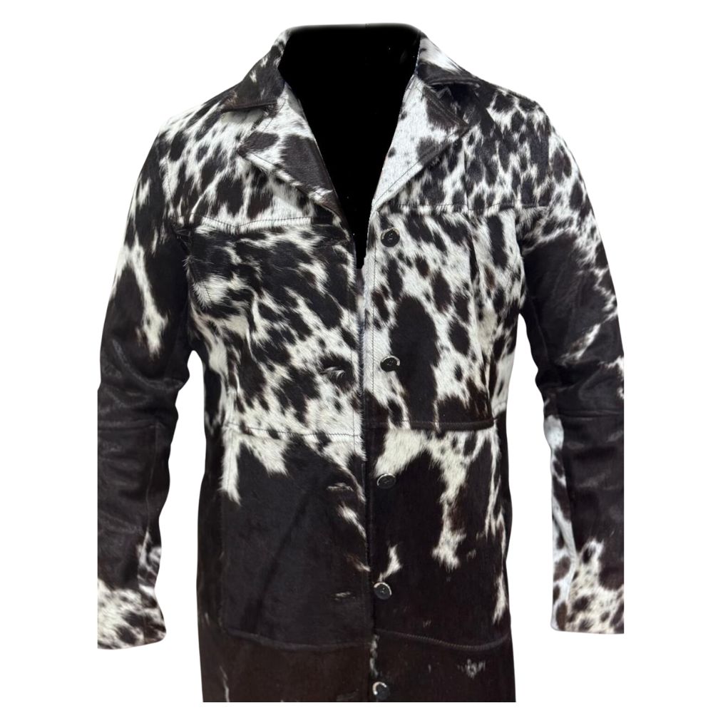 Make a bold statement this winter with our Men’s Hair on Hide Leather Coat, crafted from premium genuine cowhide leather with natural hair for a rugged yet stylish look. This long winter coat is designed to provide warmth, durability, and a unique Western-inspired appeal. Featuring luxurious faux fur lining, this jacket is the perfect combination of fashion and functionality, keeping you cozy while exuding unmatched style.