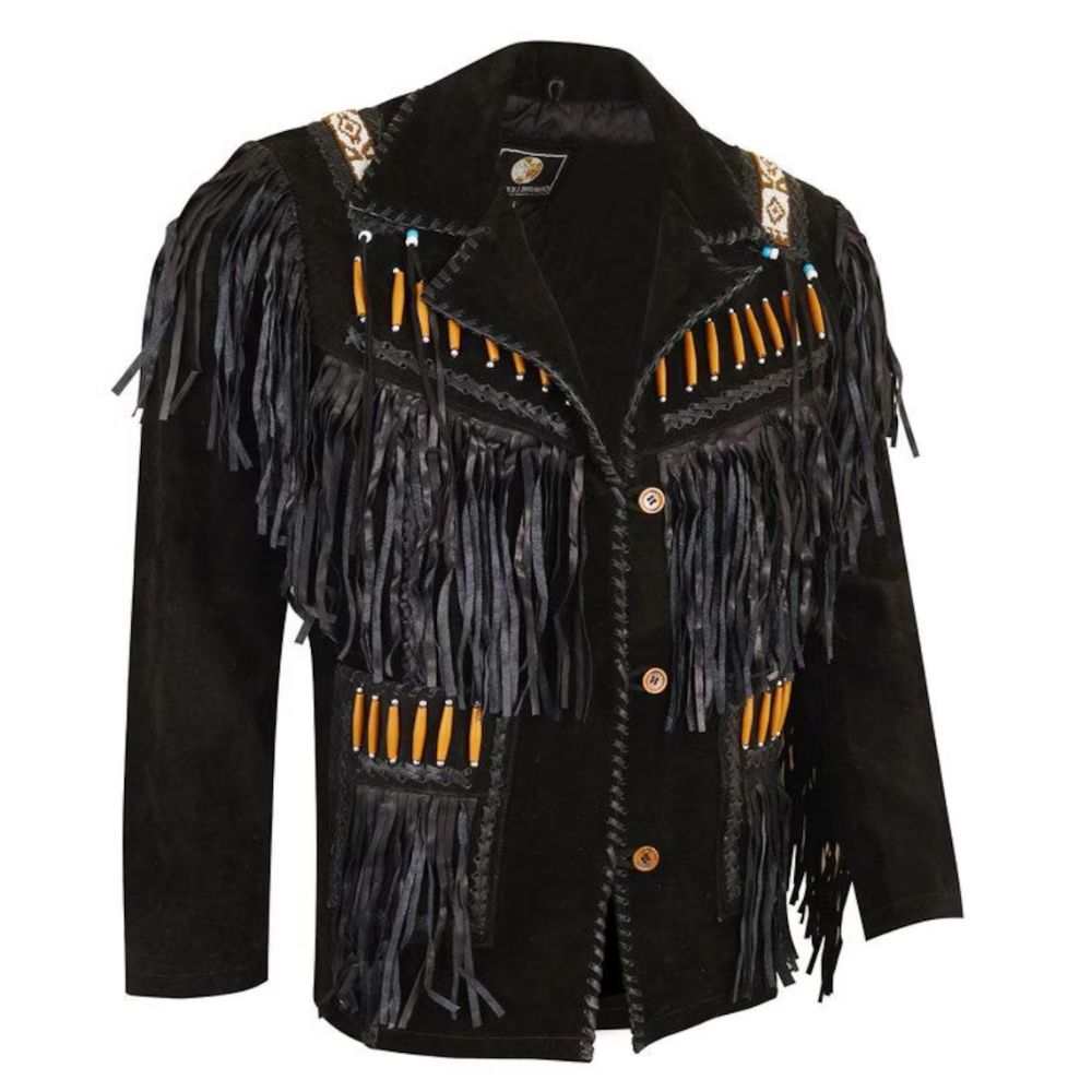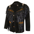 Men’s Western American Black Suede Jacket Fringe & Beaded Vintage Design