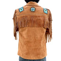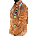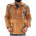 Men’s Western American Suede Leather Jacket with Fringes, Eagle Beaded Bone Design