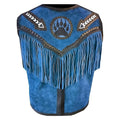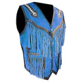 Men's Blue Western Leather Fringe Vest & Tribal Beaded Detailing – Rodeo Cowboy Style