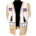 Men's Old American Flag Sioux Style Beaded Leather Vest – Handmade Regalia Western