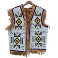 Men's Sioux Beaded Suede Leather Vest & Native American Style Fringe & Tribal Patterns