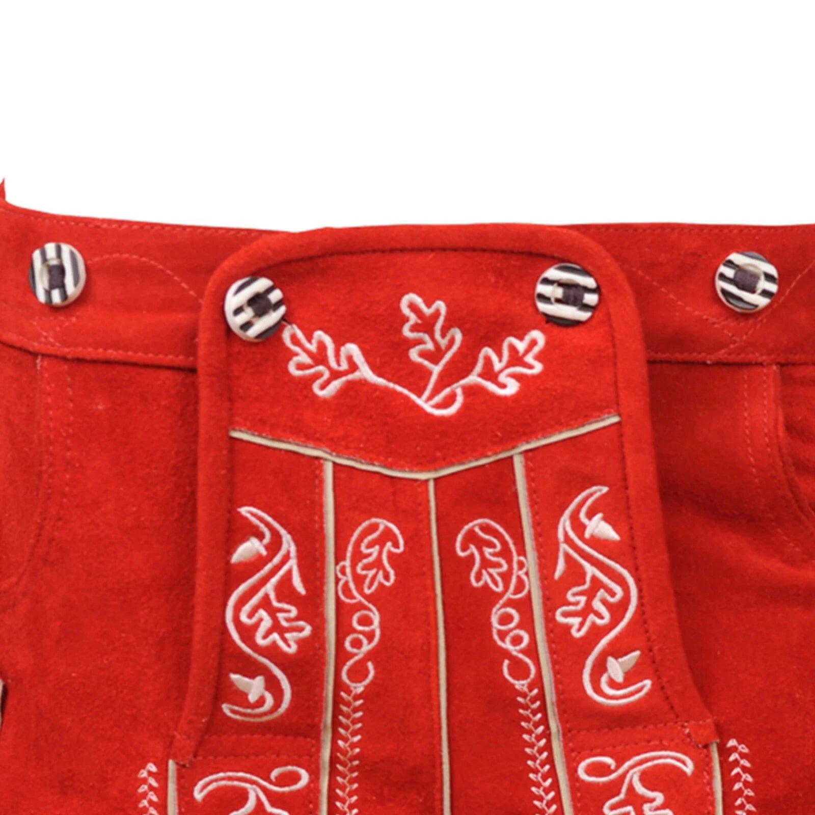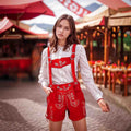 Women’s Red Suede Lederhosen | Bavarian Oktoberfest German Costume Outfit